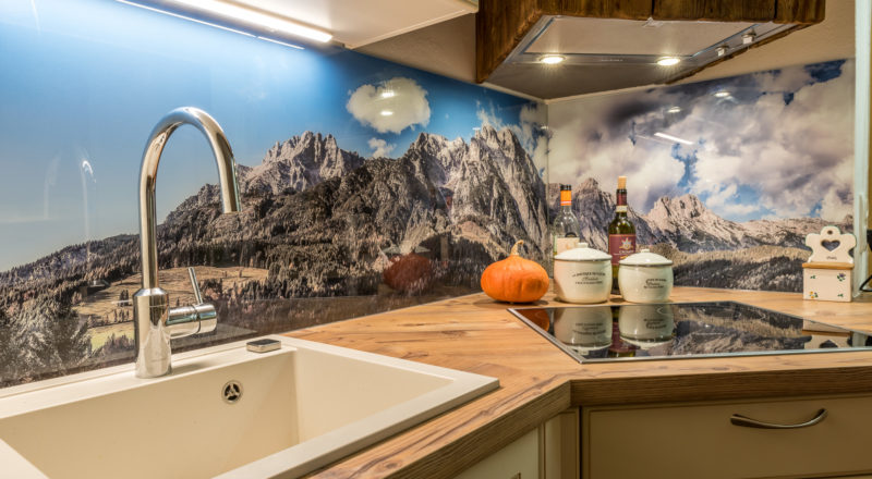 Anbei einige Fotos zu unseren Altholzdrucken in einer Kundenküche